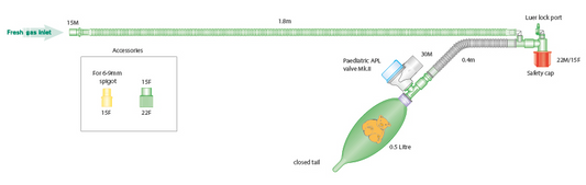 Anaesthetic Circuit - Paediatric T tube with No POP off Valve and Open Bag